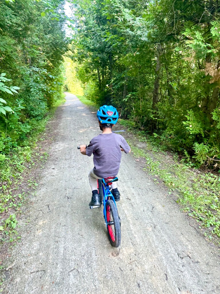 I planned the ride over the weekend, making sure it would be traffic-free so he could enjoy cycling without too many stops or distractions. After considering a few options, we chose the Caledon Trailway—a beautiful, scenic path stretching from Terra Cotta to Palgrave, ON. To start, we picked Inglewood for its close proximity to coffee shops and local bike stores. It’s perfect for a first long ride, with smooth sections and plenty of nature to enjoy along the way.
