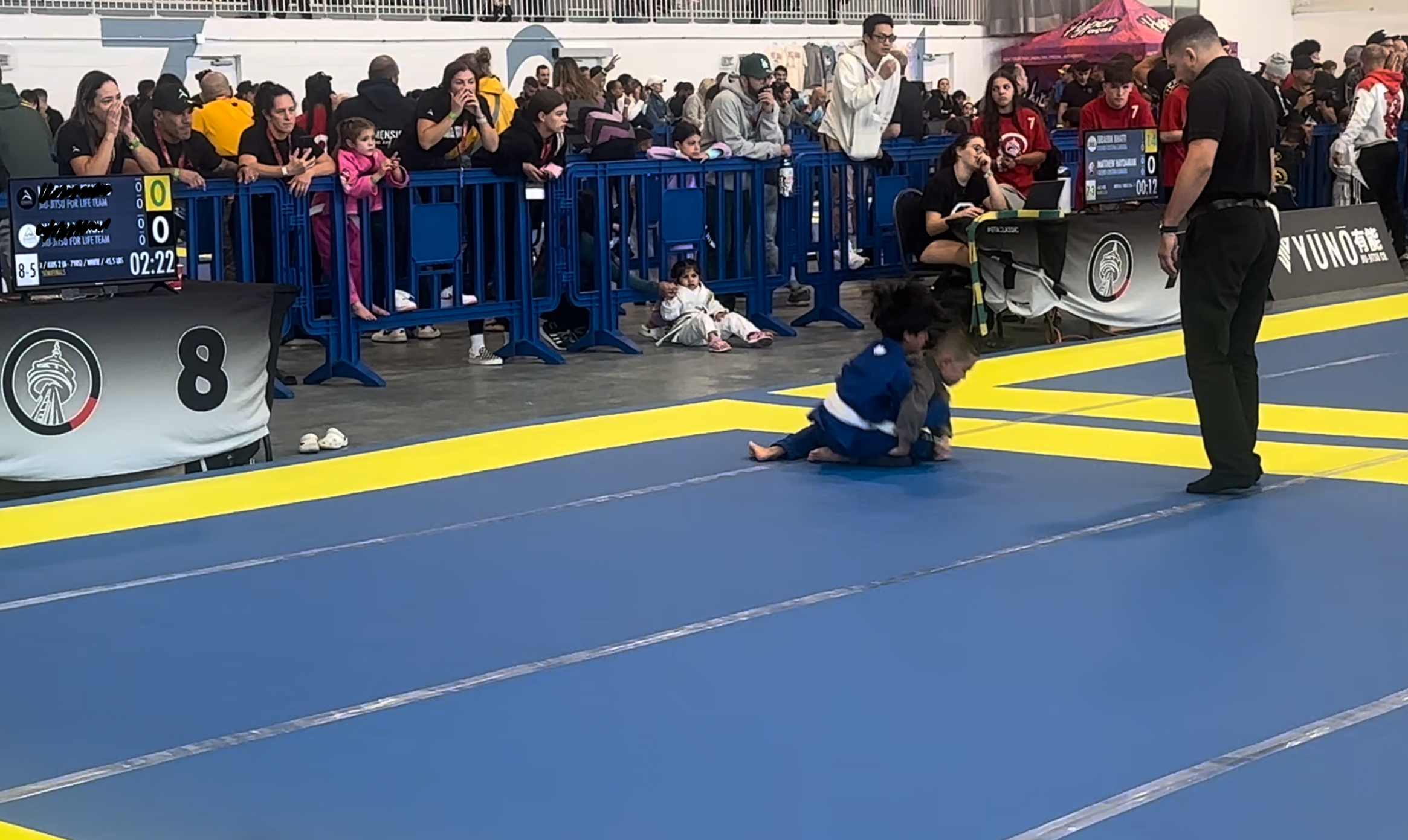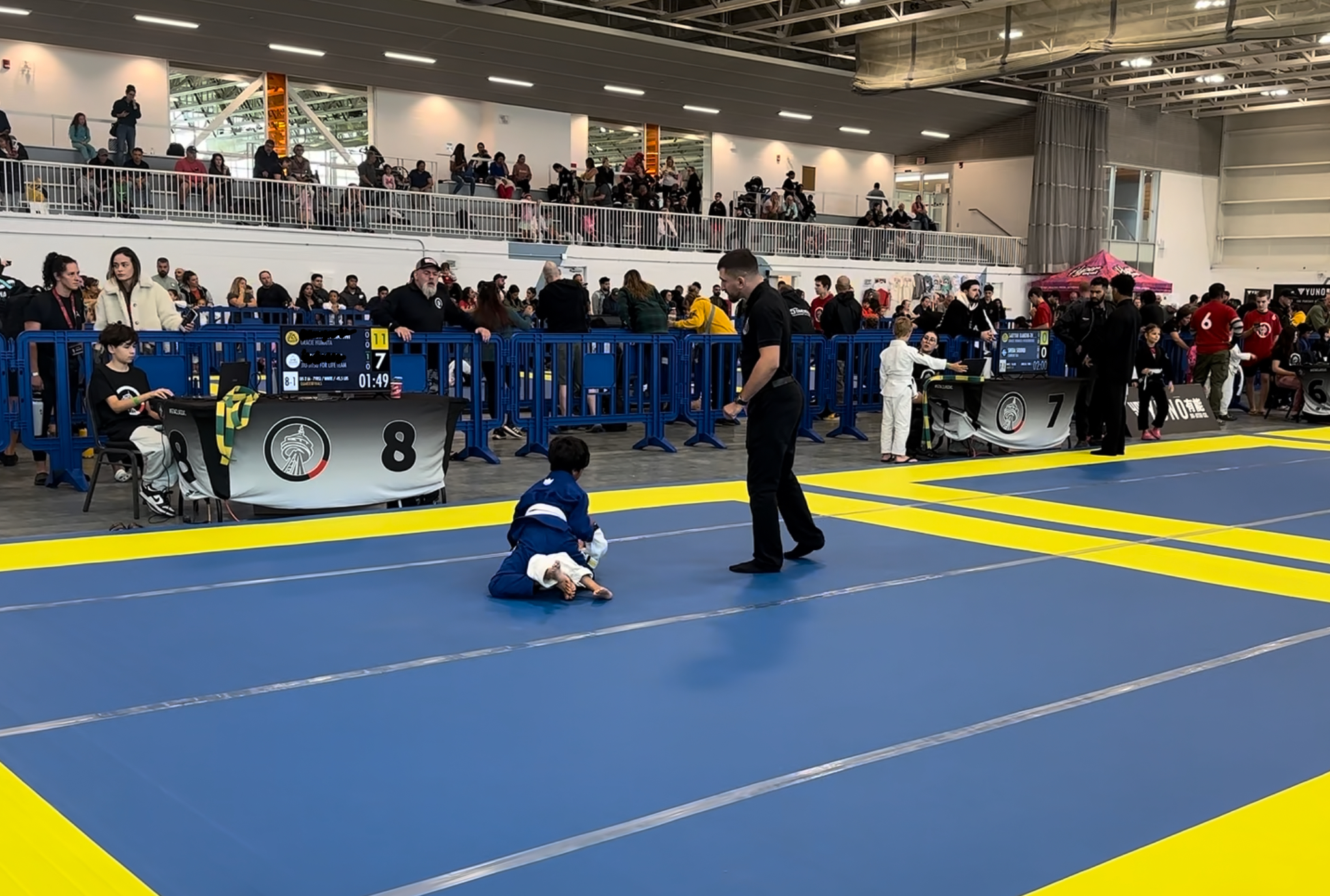 The next morning we were up at 7. I made him breakfast, and the family gave him a big group hug for good luck. Then it was just me and him heading to the Save Max Sports Centre. We arrived 45 minutes early, did registration and weigh-ins, and got ready.